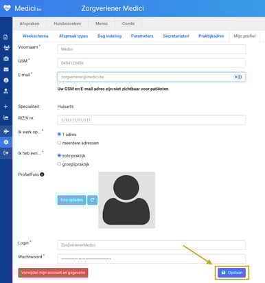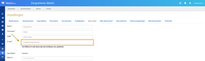 💡 Tip: Heeft u meerdere accounts (bijv. arts én secretariaat)? Controleer of u het juiste account aanpast.